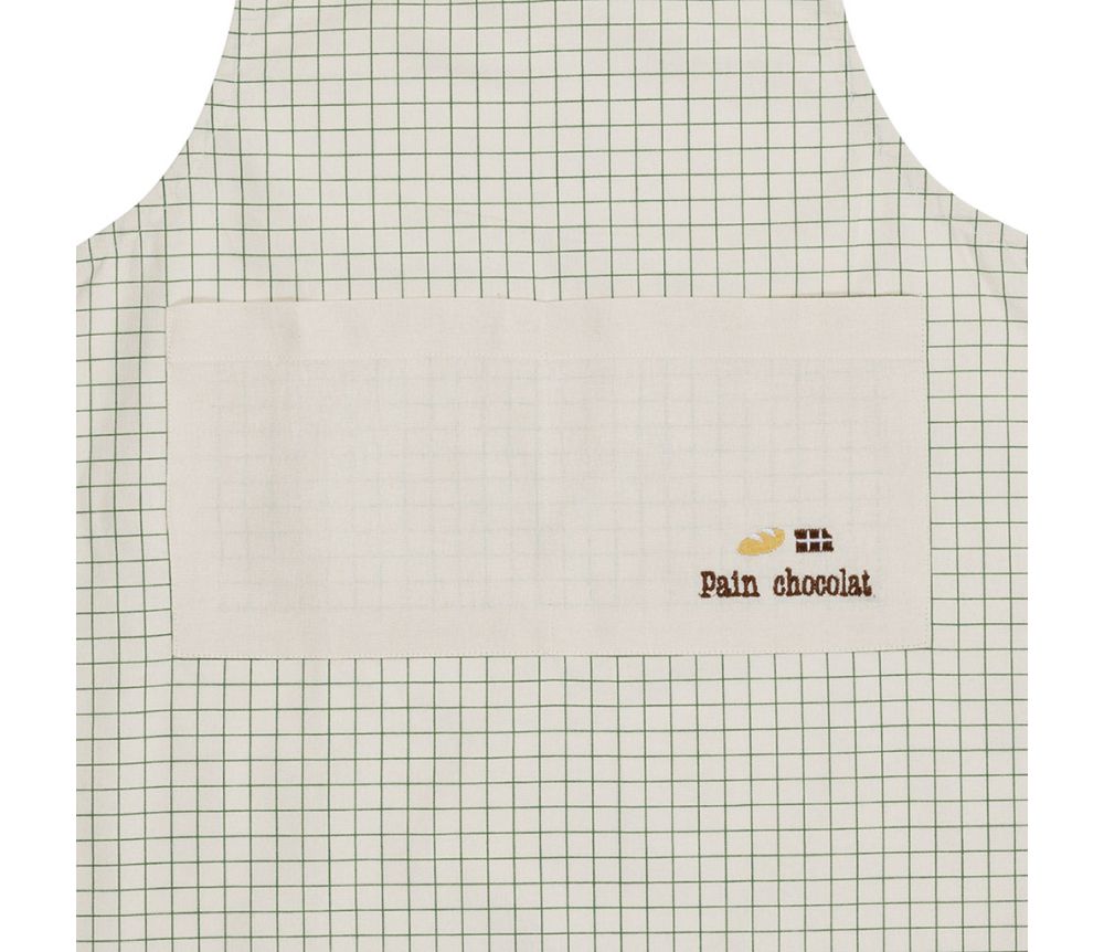 Inspiré par l'univers des boulangeries artisanales, le tablier "Pain Chocolat" arbore un design sobre et élégant. Ses fines lignes croisées vertes sur fond crème lui donnent un look vintage irrésistible, parfait pour les petits commis qui aiment faire comme les grands.